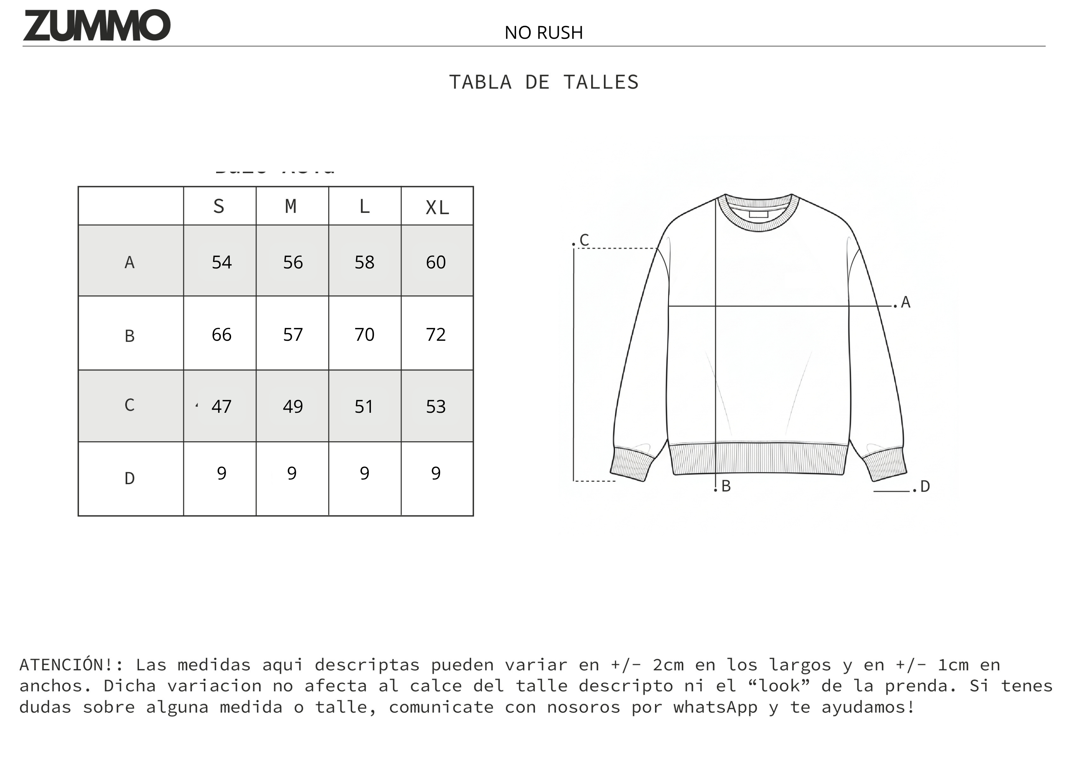 Sweater tejido en hilo con diseño a rayas bicolor, disponible en dos variantes: gris con negro y combinación de dos tonalidades de crema. Presenta lettering tejido “no rush” en el frente. Terminaciones en cuello, puños y ruedo a contratono.